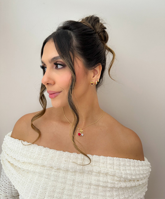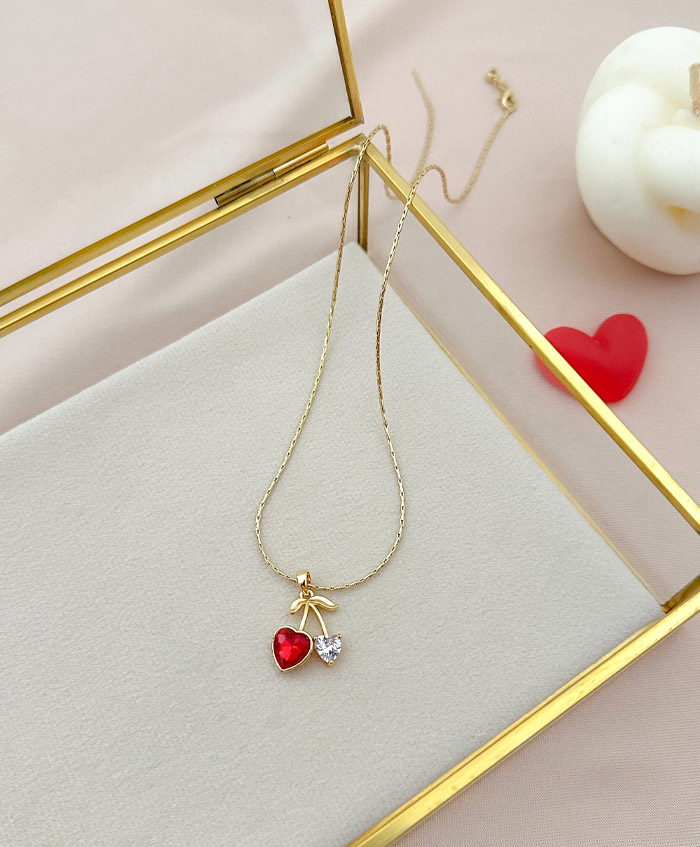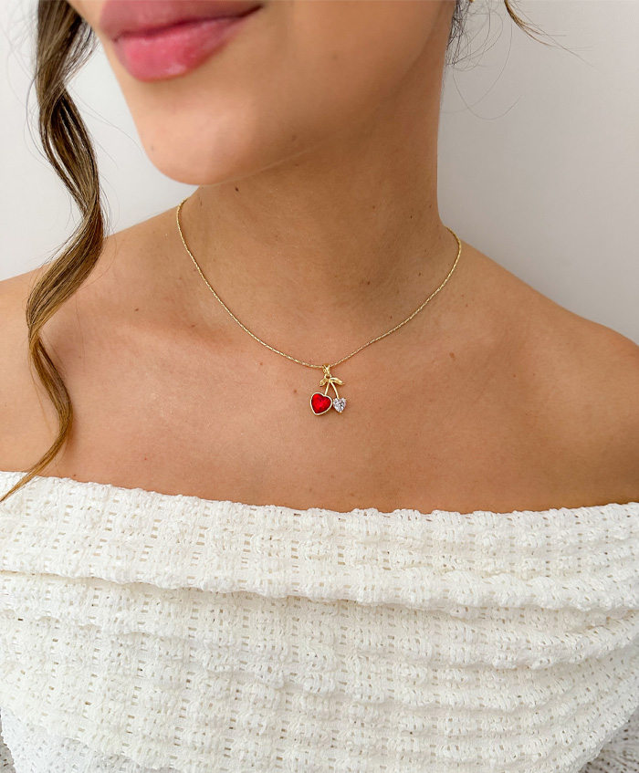 Cadenita con dije de cereza en circón, fabricada en rodio y con una medida de 44cm