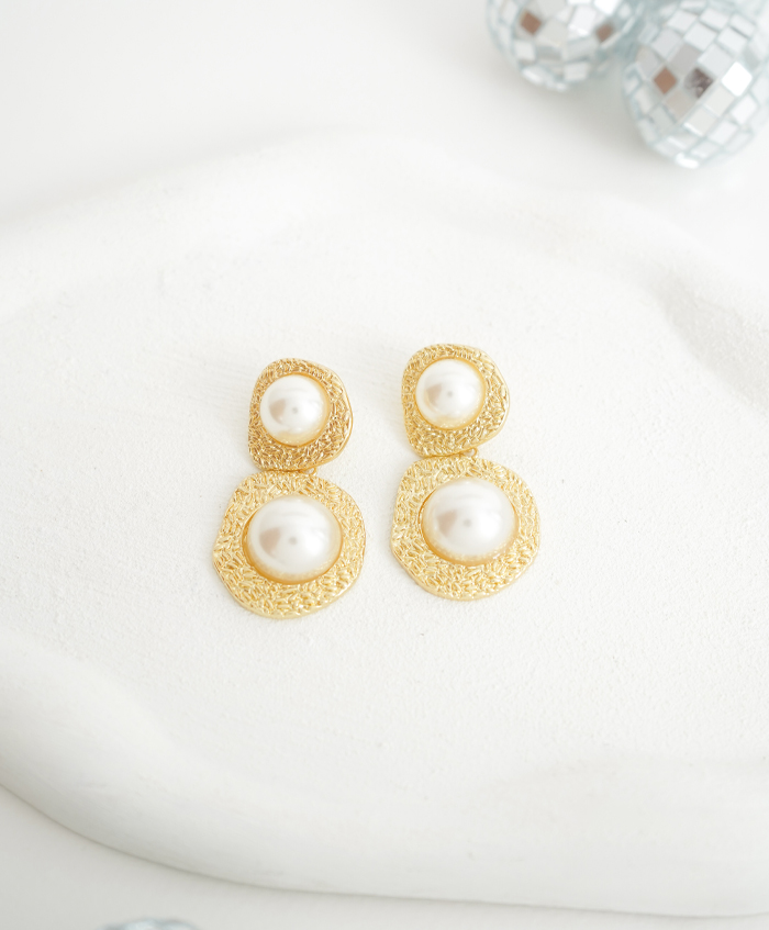 Aretes cuadrados con perla en el centro, fabricadas en rodio y con una medida de 5cm..