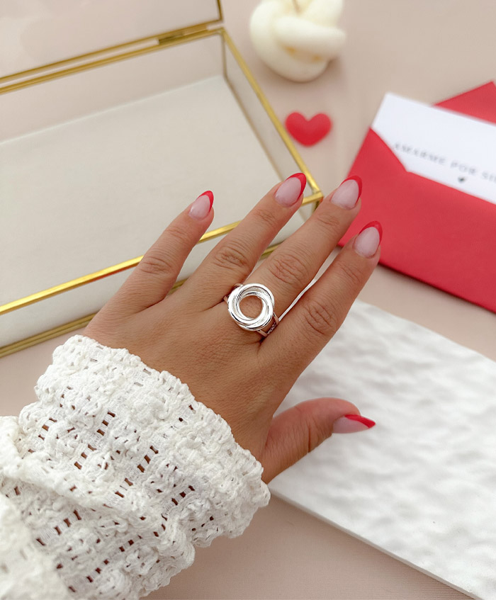 Anillo de lazo en silueta, fabricado en baño de plata y ajustable