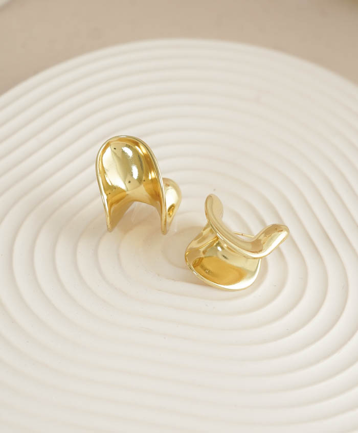 Aretes abstractos dorados, fabricados en rodio y con una medida de 3cm..