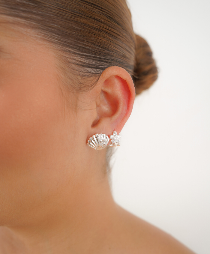 Aretes de concha con circones, fabricadas en rodio..