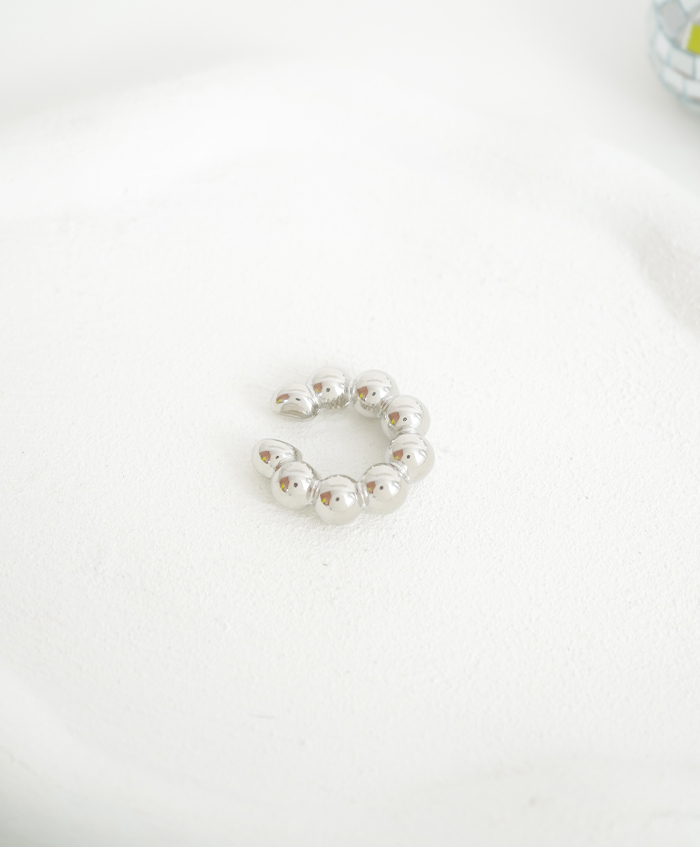 Earcuff plateado de balines grandes, fabricado en rodio y con una medida de 2.8cm..