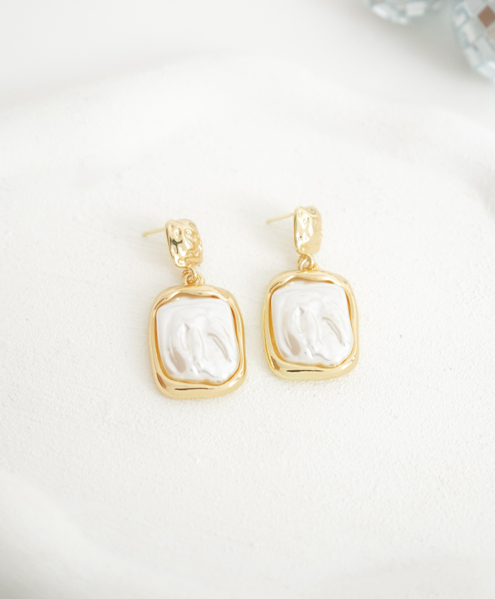 Aretes de topo cuadrado con perla sintética, fabricadas en rodio y con una medida de 4.5cm