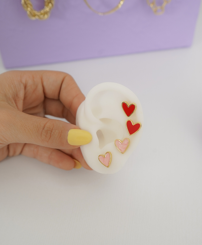 Aretes de corazón pequeños, fabricados en rodio..
