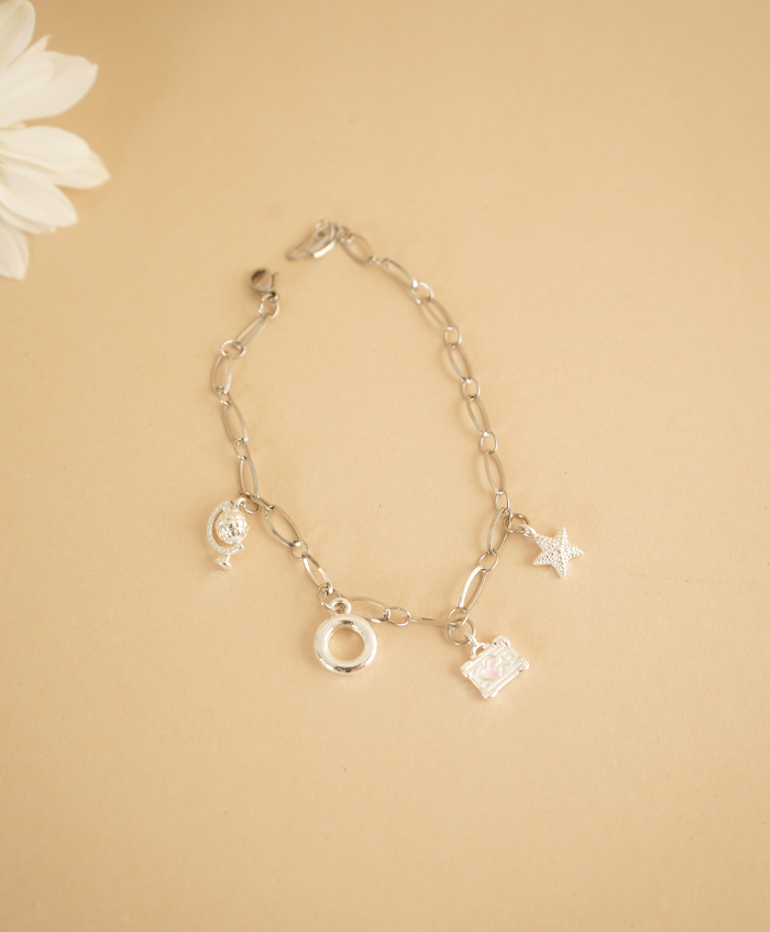 Pulsera de eslabones alargados, fabricada en rodio y con una medida de 21cm
