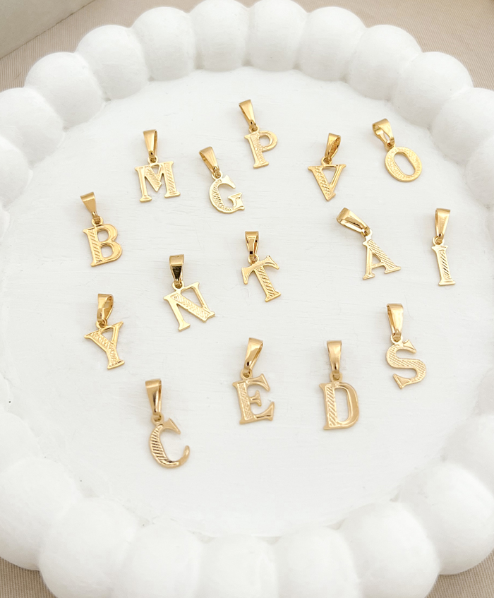 Dije inicial. Fabricado en oro laminado de 18k, con una medida de 1.5cm. Cuenta con una garantía de 2 años por defecto de fabrica o cambio de color. Conserva tu factura para cambios y garantías