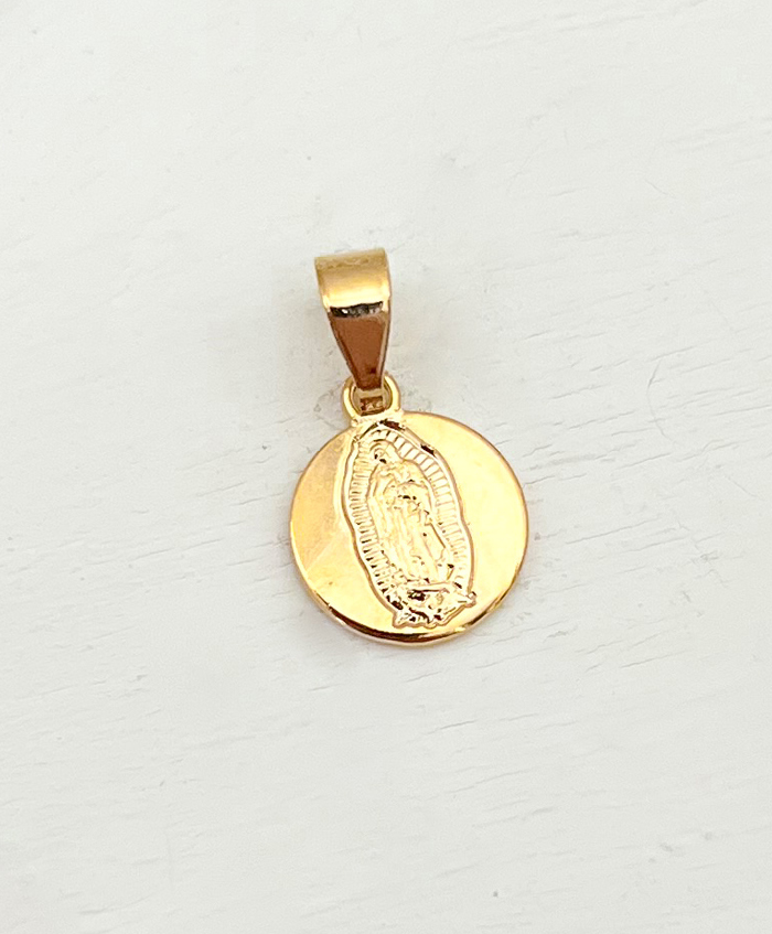 Dije de virgen de Guadalupe fabricado en oro laminado de 18k, con una medida de 1.5cm. Cuenta con una garantía de 2 años por defecto de fabrica o cambio de color.Conserva tu factura para cambios y garantías