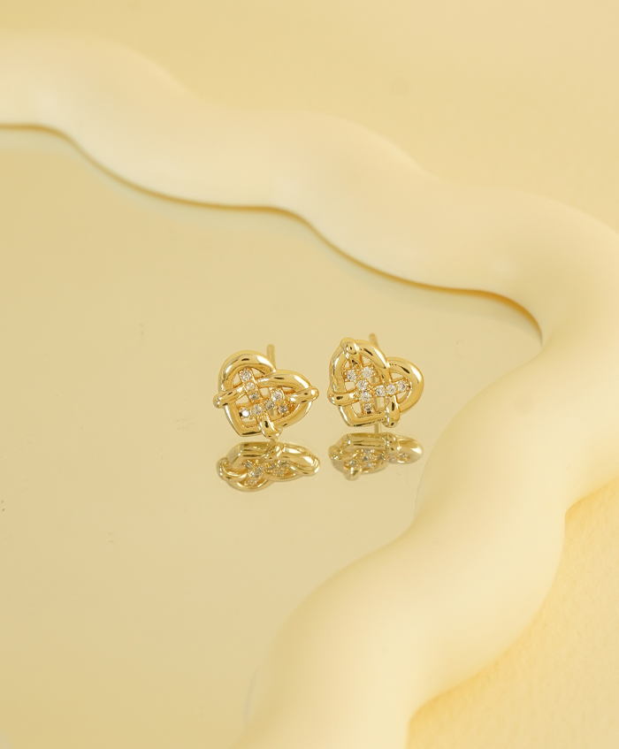Aretes de corazón trenzado con circones, fabricadas en rodio