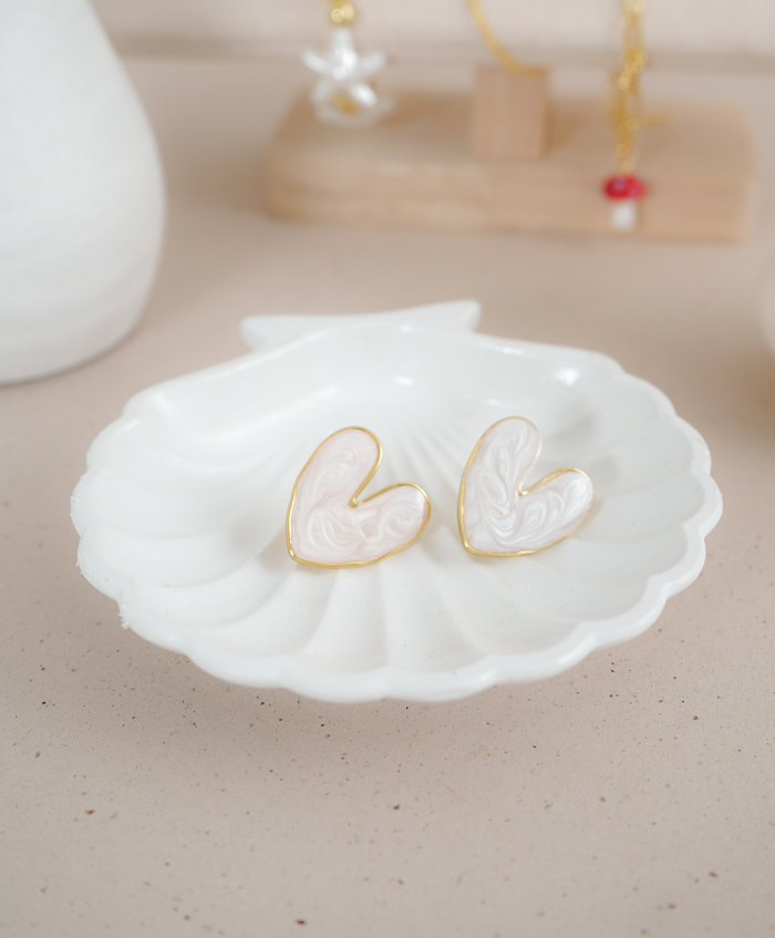 Aretes de corazón grande veteado, fabricado en rodio y con una medida de 2.5cm..