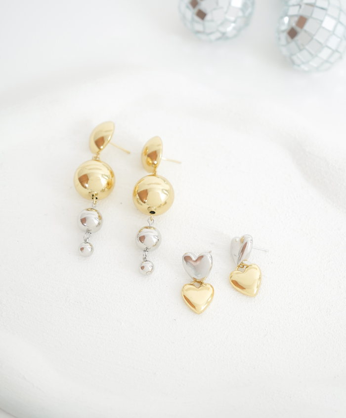 Aretes de bolas doradas y plateadas, fabricadas en rodio y con una medida de 6cm
