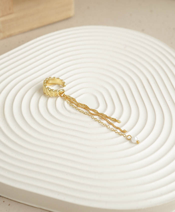 Earcuff con cadenas, fabricado en oro goldfilled y con una medida de 5.5/5/4.5cm
