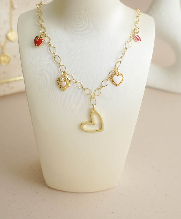 Cadena de eslabones grandes, con dijes de corazón fabricado en rodio y con una medida de 40cm y 4cm de extensión..