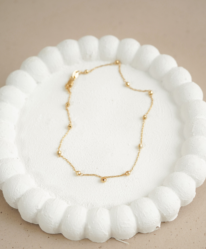 Tobillera alterna balín fiesta 3mm fabricada en oro laminado de 18k, con una medida de 25cm. Cuenta con una garantía de 2 años por defecto de fabrica o cambio de color. Conserva tu factura para cambios y garantías