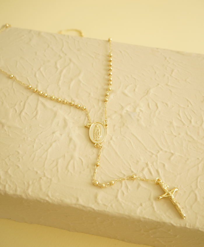 Camándula de virgen de Guadalupe, fabricada en rodio y con una medida de 45cm