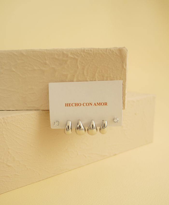 Set de 3 aretes en gota plateada y circón, fabricadas en rodio