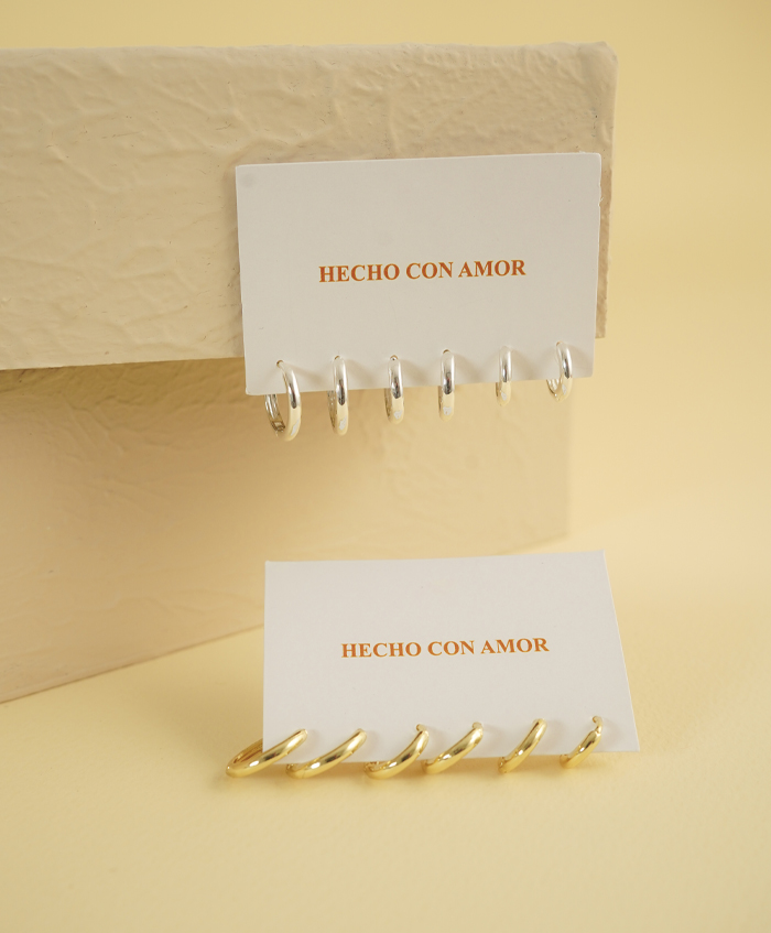 Set de candongas delgadas en dorado y plateado, fabricadas en rodio y con una medida de 1.3cm,1.1cm y 9mm