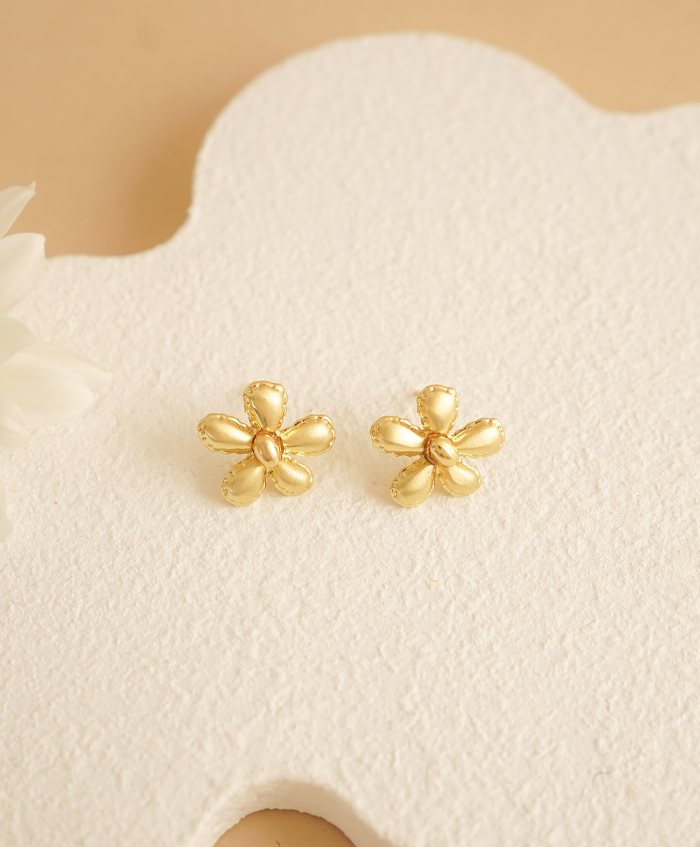 Aretes de flor doradas, fabricadas en rodio y con una medida de 2.5cm..