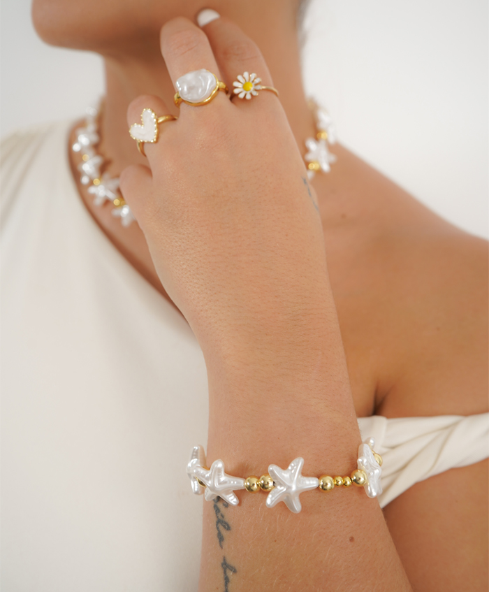 Pulsera con estrellas de mar en nácar, fabricada en rodio..