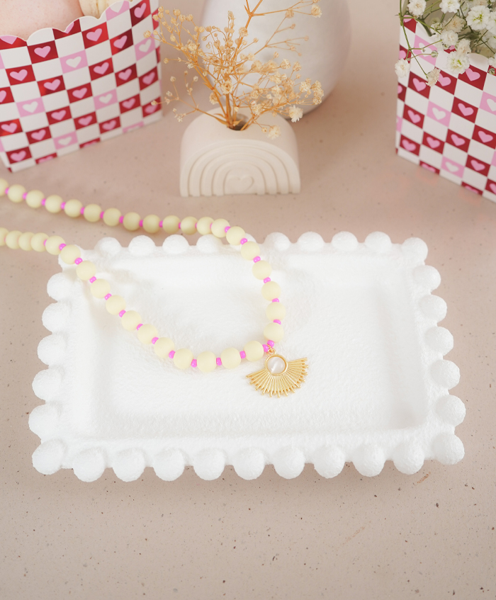 Choker de bolitas y dije de medio sol con perla en el centro, fabricado en ábaco y rodio