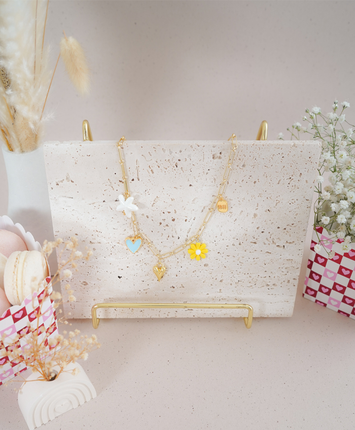 Collar en cadena de clip dorada, fabricada en rodio y con una medida de 40cm y 5cm de extensión..