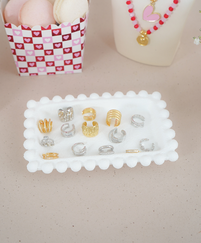 Earcuff triple de circones y triple de lineas doradas, fabricado en rodio
