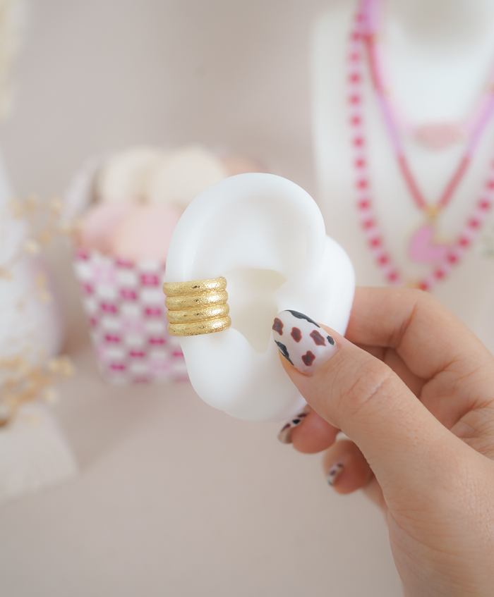 Earcuff de cuatro líneas con textura de azúcar, fabricado en rodio