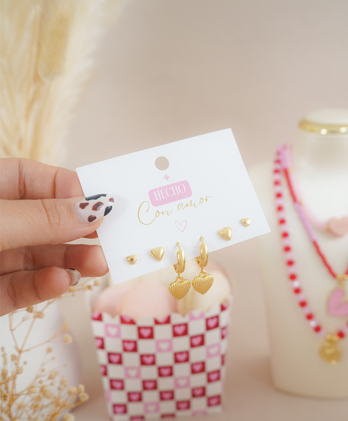 Set de aretes de corazón con candongas, fabricadas en rodio y con una medida de 2.5cm