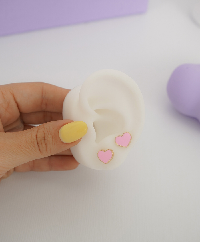 Aretes de corazón rosa, fabricadas en rodio