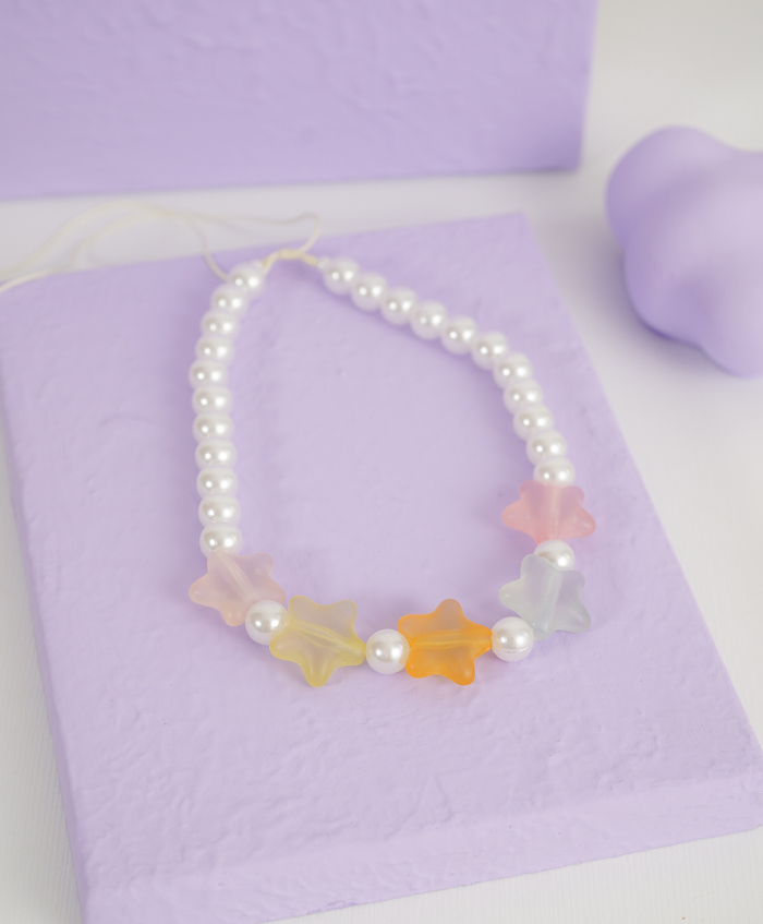 Choker de perlas sintéticas y estrellas de colores en resina, ajustable