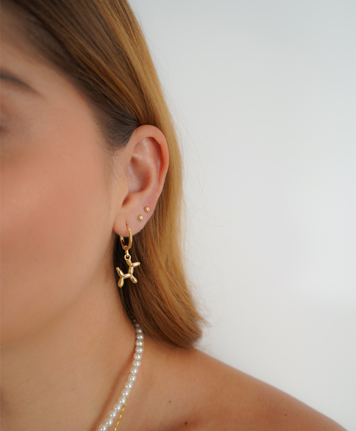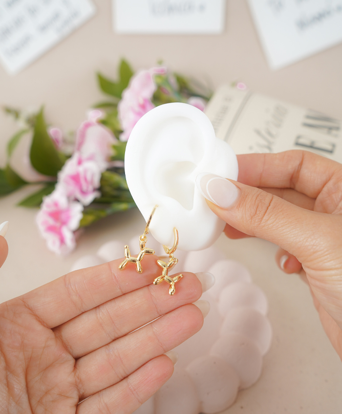 Candongas con dije de perrito de globo, fabricadas en rodio y con una medida de 3cm..